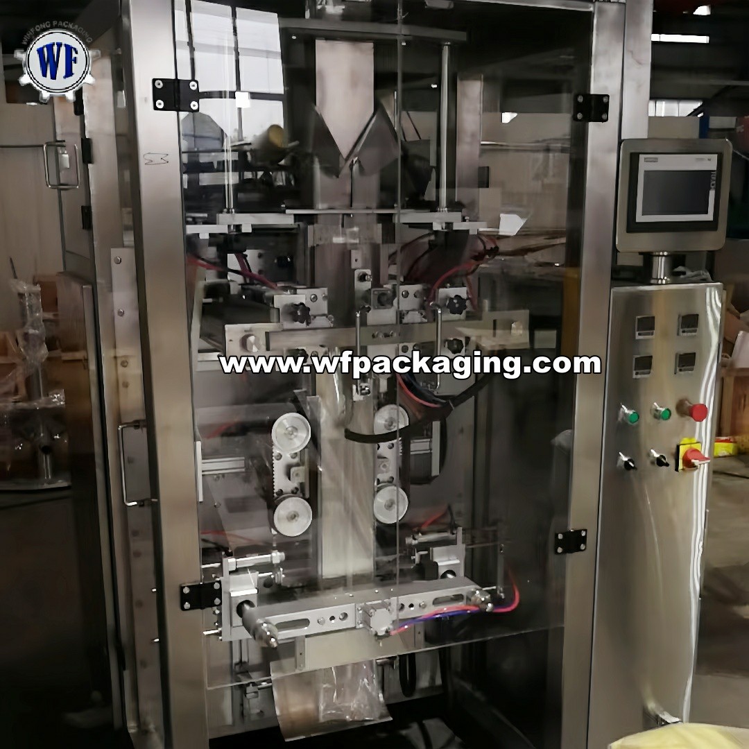 This machine integrates bag-making, filling, sealing, printing, punching and counting, valve-welding into one. |