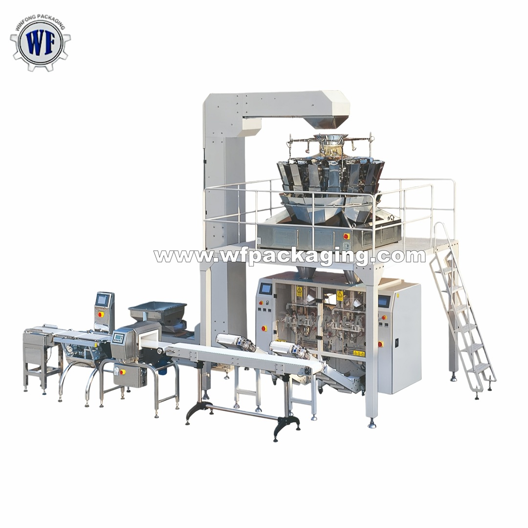 1. MHW10 combination head weigher 2. Z type bucket elevator 3. WF520-W packing machine 4. Take-off conveyor 5. Platform |